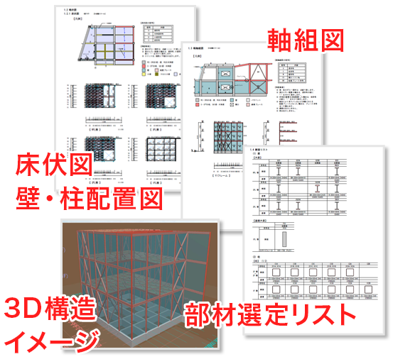 床伏図、壁・柱配置図、軸組図、部材選定リスト、お見積りまで、無料でご提出いたします。